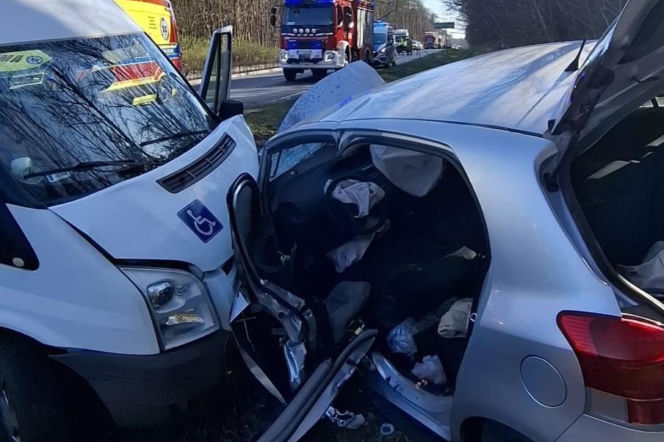 Do wypadku doszło dziś (2 kwietnia) ok. godz. 15:00 przy ul. Leszczyńskiej we Włoszakowicach, przy wjeździe do miejscowości od strony Leszna. Jak wstępnie ustalono, kierowca busa z nieustalonych przyczyn zjechał na przeciwny pas ruchu i tam zderzył się z osobową toyotą. Kierowca toyoty oraz kierowca busa i jego pasażerowie zostali zabrani do szpitala.