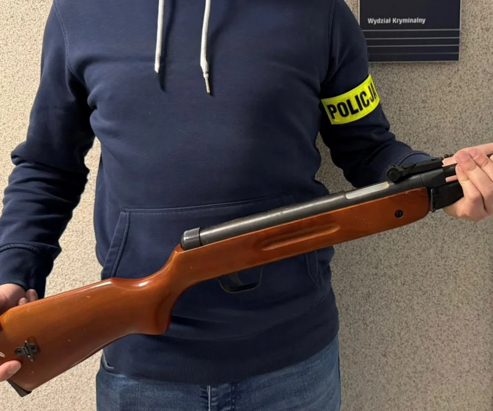 Policjanci zabezpieczyli u mężczyzny wiatrówkę oraz śrut.