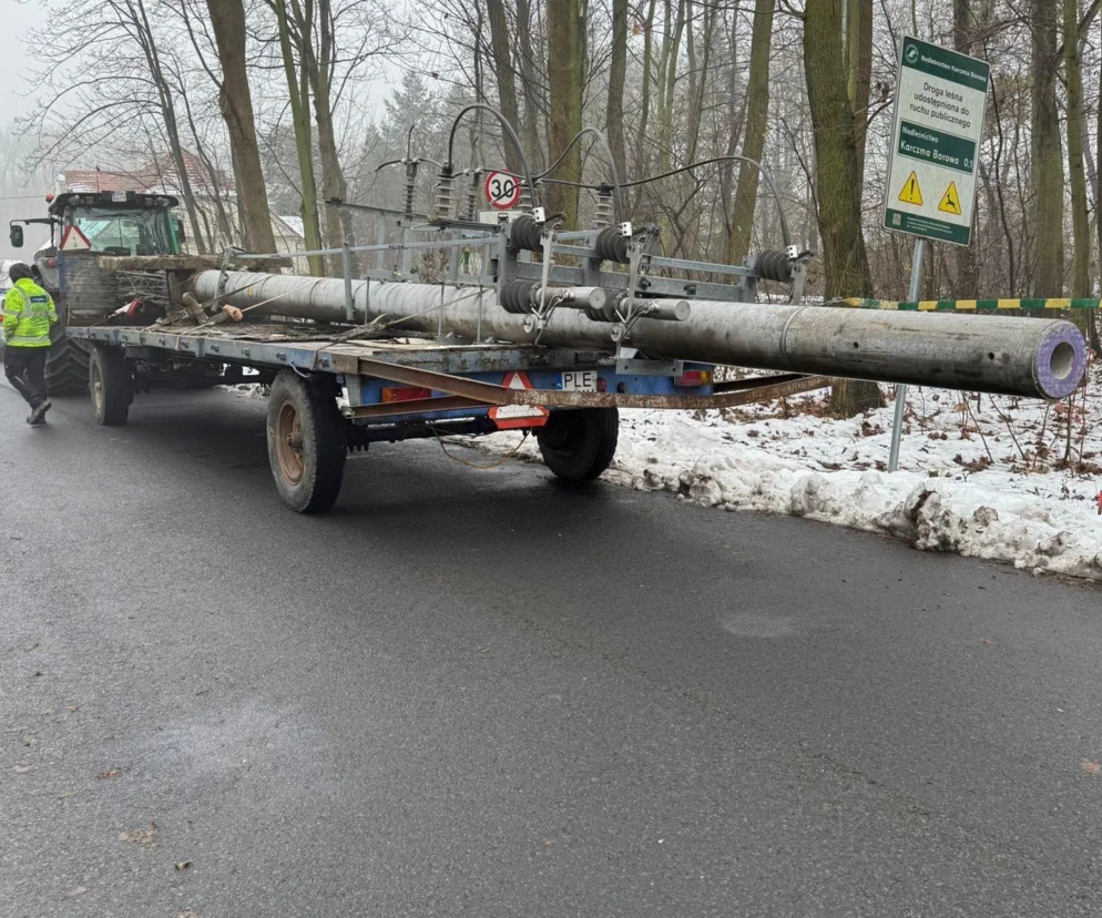 Było to wczoraj, 1 grudnia, gdy region spowity był mgłą, a na drogach było ślisko. Przy wjeździe do Leszna od strony Gostynia uwagę policjantów drogówki przykuł ciągnik rolniczy z naczepą i długim załadunkiem. Kierujący ciągnikiem mężczyzna przewoził kilkumetrowy betonowy słup energetyczny.