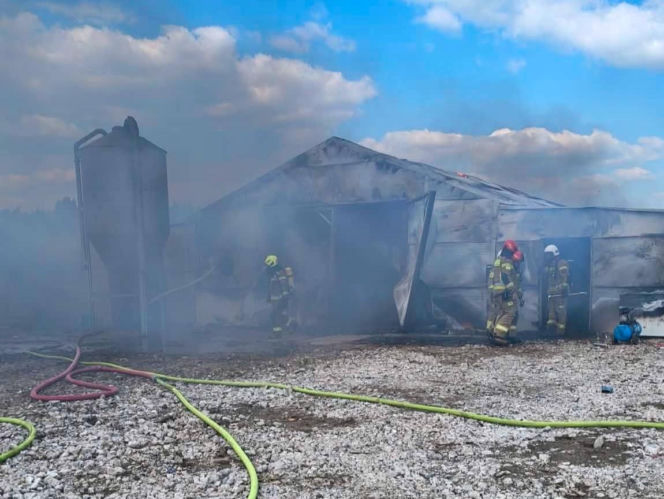 Ogromne straty po pożarze wielkiego kurnika w Lipinkach. W środku trzymano blisko 2 tysiące bażantów