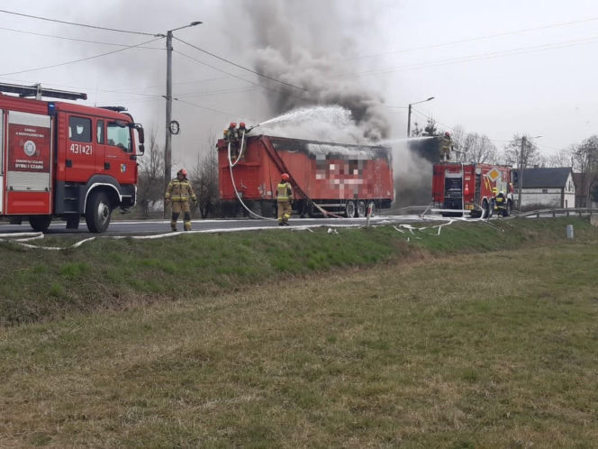 Zablokowana DK12 w Dębowej Łęce po pożarze ciężarówki. Objazdy od S5 Leszno-Zachód