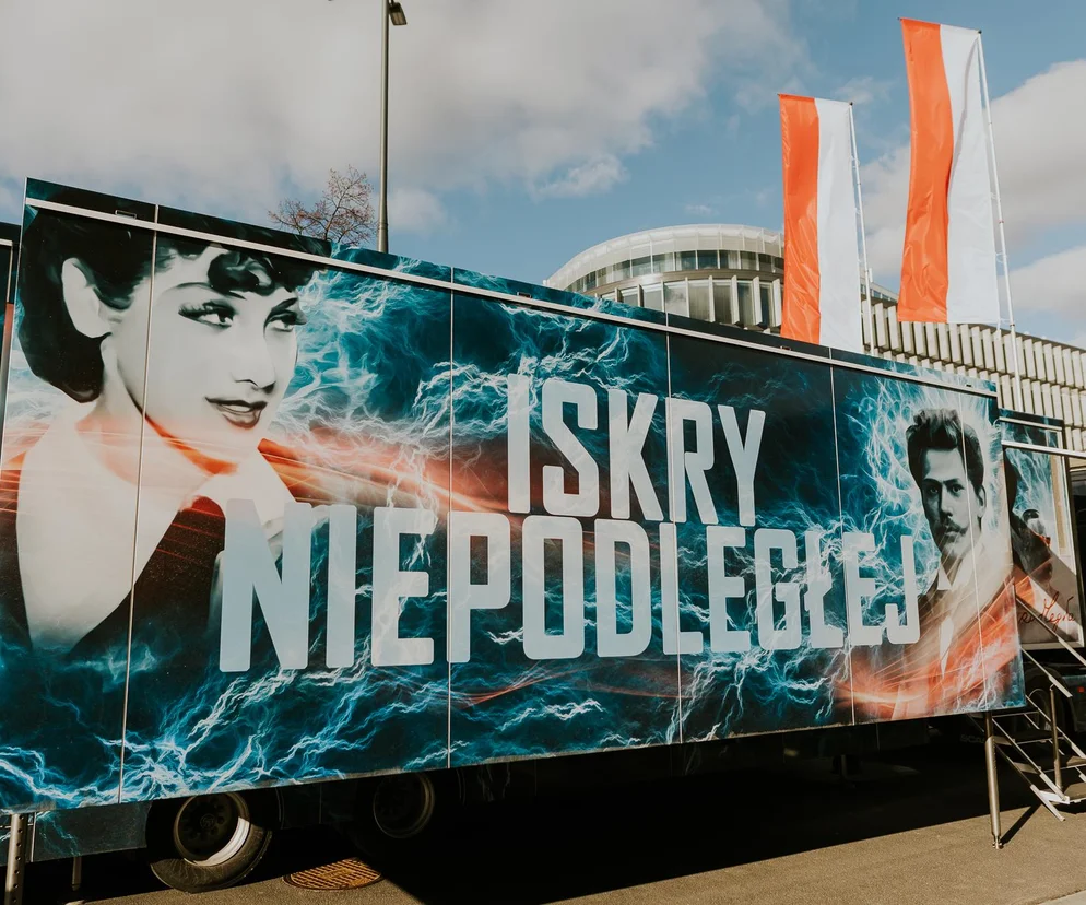 „Iskry Niepodległej” to nie klasyczna wystawa, lecz pełne emocji widowisko, w którym historia łączy się z nowoczesną technologią. Naczepa ekspozycyjna ma futurystyczny, kosmiczny wygląd. W środku znajdują się ekrany transparentne, wizualizacje tworzone przez sztuczną inteligencję (AI) oraz specjalne oświetlenie, które podkreśla każdy fragment opowieści.