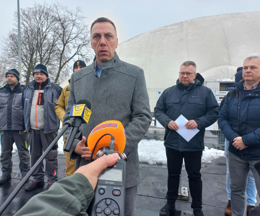 - W wyniku sprawnego działania służb, pracowników MOSIR-u uniknęliśmy tragedii, zagrożenia. To zjawisko spotęgowane było osadzaniem mokrego i ciężkiego śniegu oraz dodatkowo wychładzaniem obiektu. Inne tego typu obiekty w Lesznie są ogrzewane, a ten balon nie dosyć, że nie jest ogrzewany to jest jeszcze wychładzany, co spowodowało opadanie tego zadaszenia. Reakcja pracowników MOSIR-u była wzorowa. Bardzo szybko, błyskawicznie doszło do wykrycia tego zdarzenia. Nastąpiła ewakuacja użytkowników, doszło do sprawnego zamknięcia tego obiektu. o, że tak szybko zadziałaliśmy spowodowało, że nie doszło do uszkodzenia poszycia zadaszenia. Ten śnieg został usunięty, zadaszenie zostało opuszczone do zera. Po usunięciu śniegu napompowaliśmy ten balon z powrotem i dzięki temu uchroniliśmy mienie miasta o znacznej wartości i nie spowodowało to żadnych strat - mówił Maciej Grabianowski, wiceprezydent Leszna podczas dzisiejszej konferencji prasowej przy zadaszonym znów obiekcie.