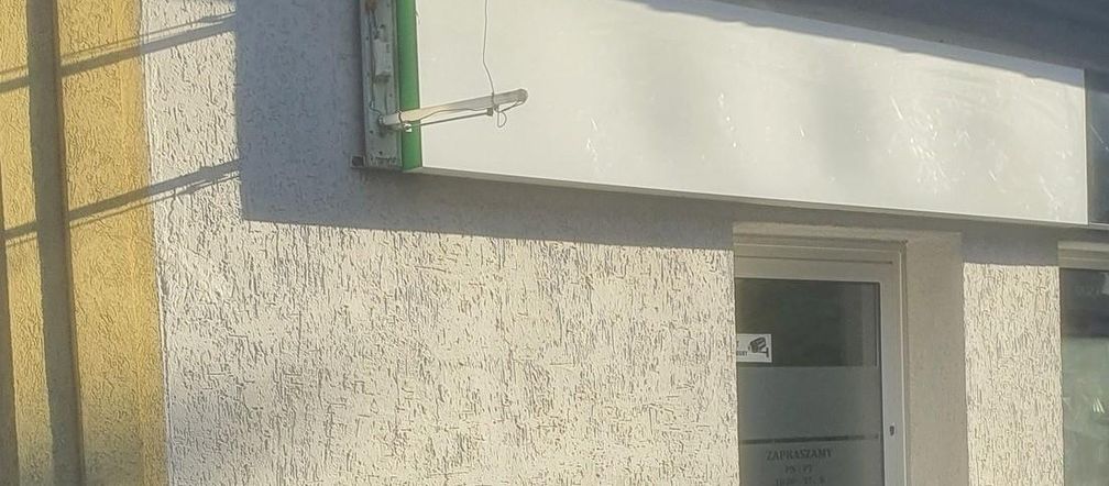Długi baner z pleksi spadł na chodnik, rozbijając się na drobne kawałki. Straty oszacowano na 1550 złotych.