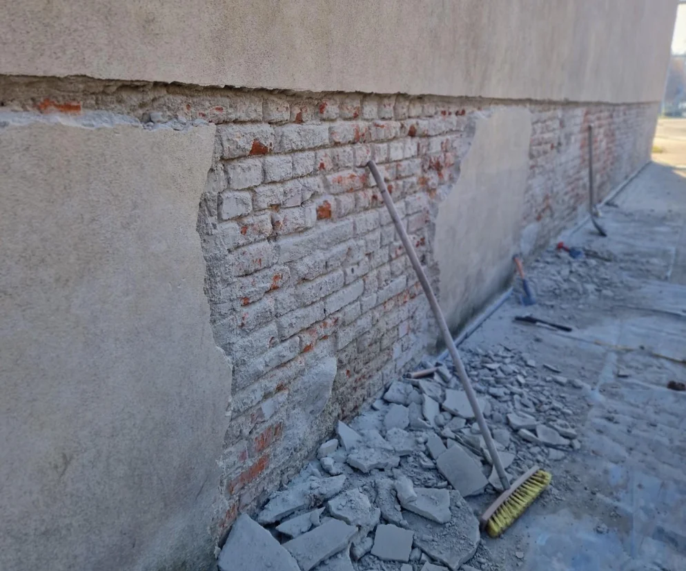 Od kilku dni mieszkańcy mogą zauważyć prace przy zachodniej części ogrodzenia. Tynki z 2007 roku zostały przesycone solami krystalizującymi się w murze i zaczęły się kruszyć. Dlatego konserwatorzy muszą je skuć i odsłonić kamienno-ceglaną powierzchnię, aby mogła wyschnąć i być monitorowana.