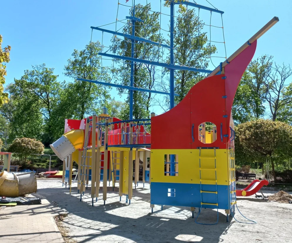 Obok statku zamontowano już m.in. wielkiego pająka oraz karuzelę i huśtawki, z którym będą mogły korzystać także dzieci z niepełnosprawnościami. Niebawem pojawi się tam także piaskownica i bezpieczna, miękka nawierzchnia wokół statku.