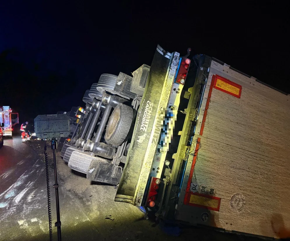 Poszkodowaną osobą jest kierowca ciężarówki, który został przewieziony na badania do szpitala.